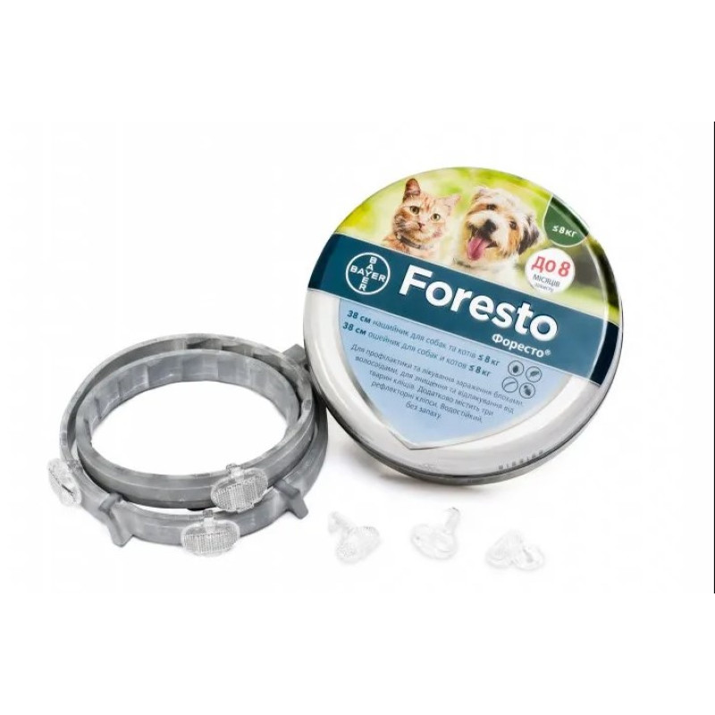 Bayer Foresto Dogs & Cats Протипаразитарний нашийник для собак та котів вагою до 8 кг від бліх, кліщів та волосоїдів