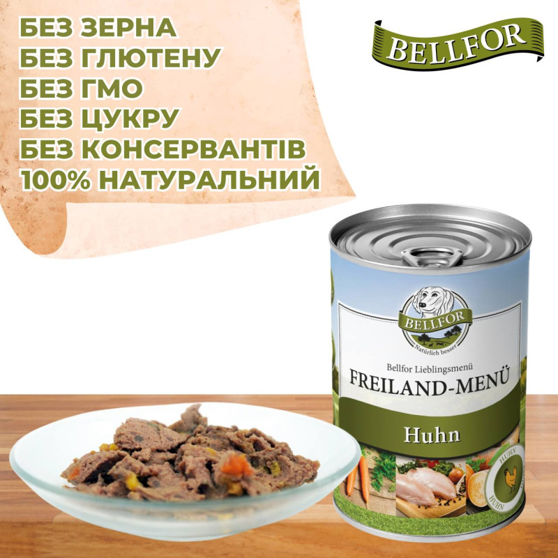 Bellfor Freiland-Menu Chicken Беззернова монопротеїнова консерва для собак з м'ясом курки