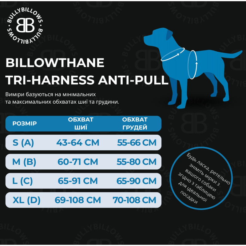 BullyBillows Billowthane TRI-Harness Anti-Pull Біотанова анатомічна шлея для собак що тягнуть повідець