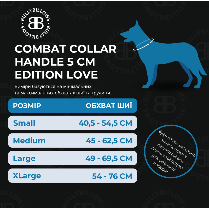 BullyBillows Combat Collar Handle 5 cm Edition Love Тактичний широкий нашийник з ручкою та ривковим замком для собак