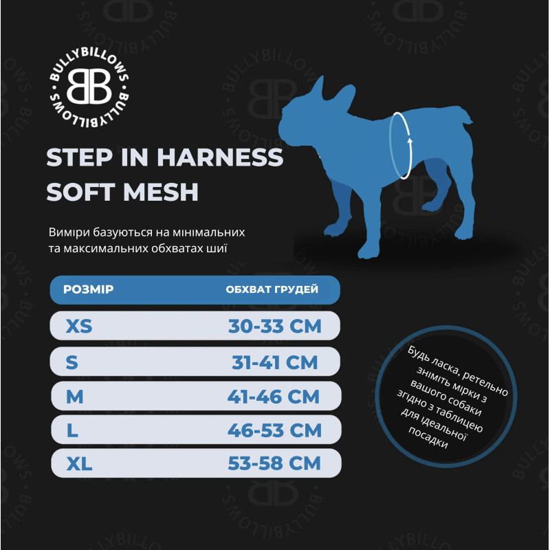 BullyBillows Step in Harness Soft Mesh Ергономічна анатомічна м'яка шлейка для собак з чутливою шкірою
