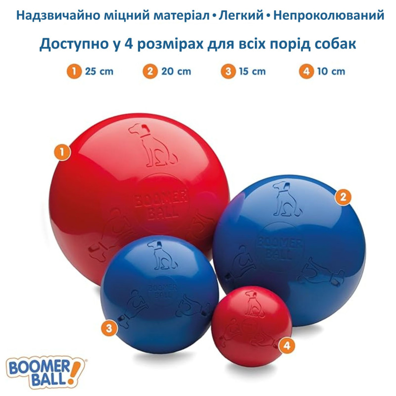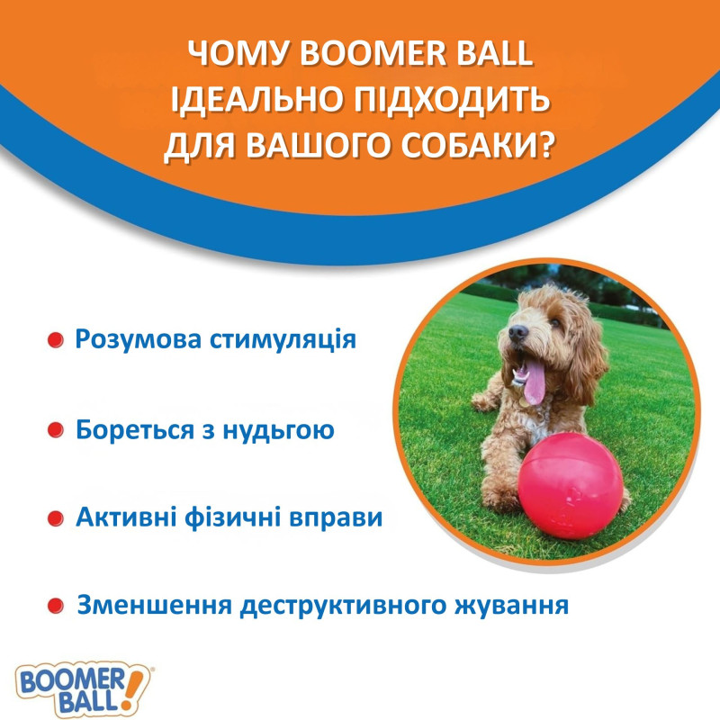 Boomer Ball - це ультрастійкий м’яч, створений спеціально для собак, які обожнюють ганяти, штовхати й випробовувати іграшки “на міцність”. Його практично неможливо прокусити, тому
