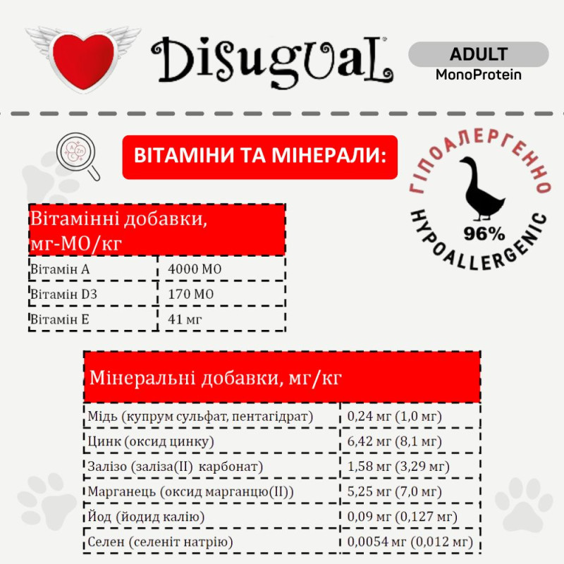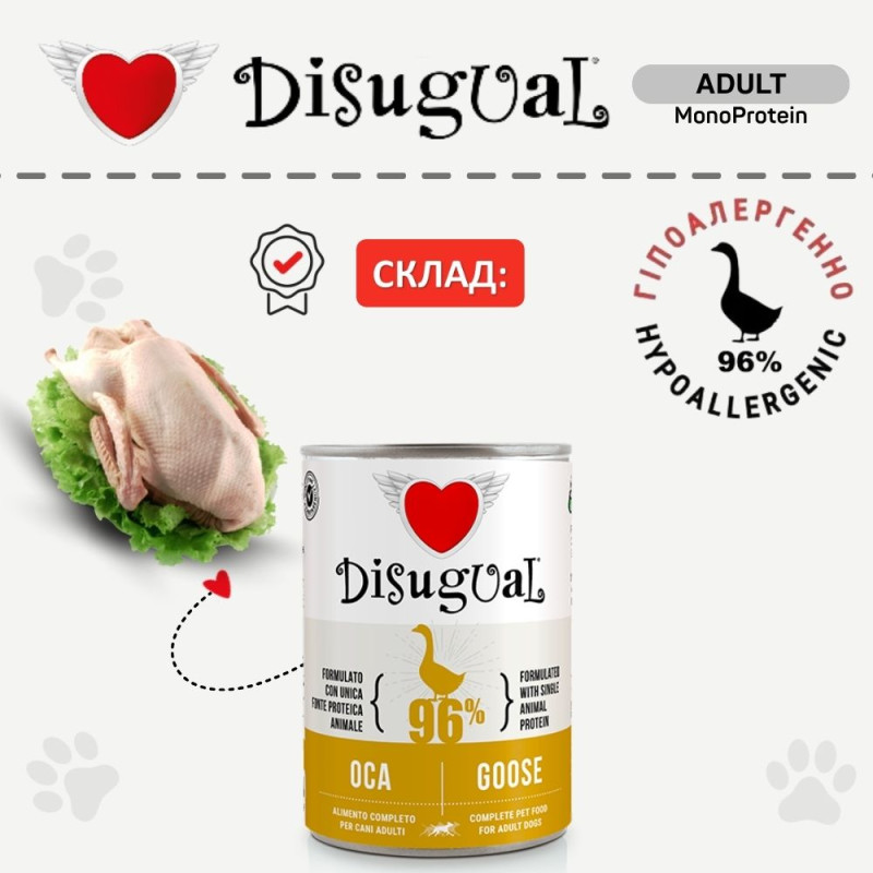Disugual Dog MonoProtein 96% Goose містить лише одне джерело високоякісного