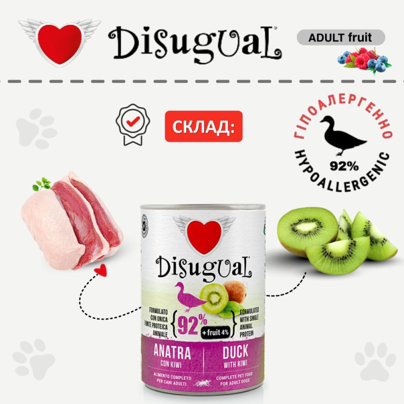 Disugual Dog MonoProtein Fruit 92% Duck & Kiwi Монопротеїнова беззернова консерва для собак Паштет з Качки та Ківі