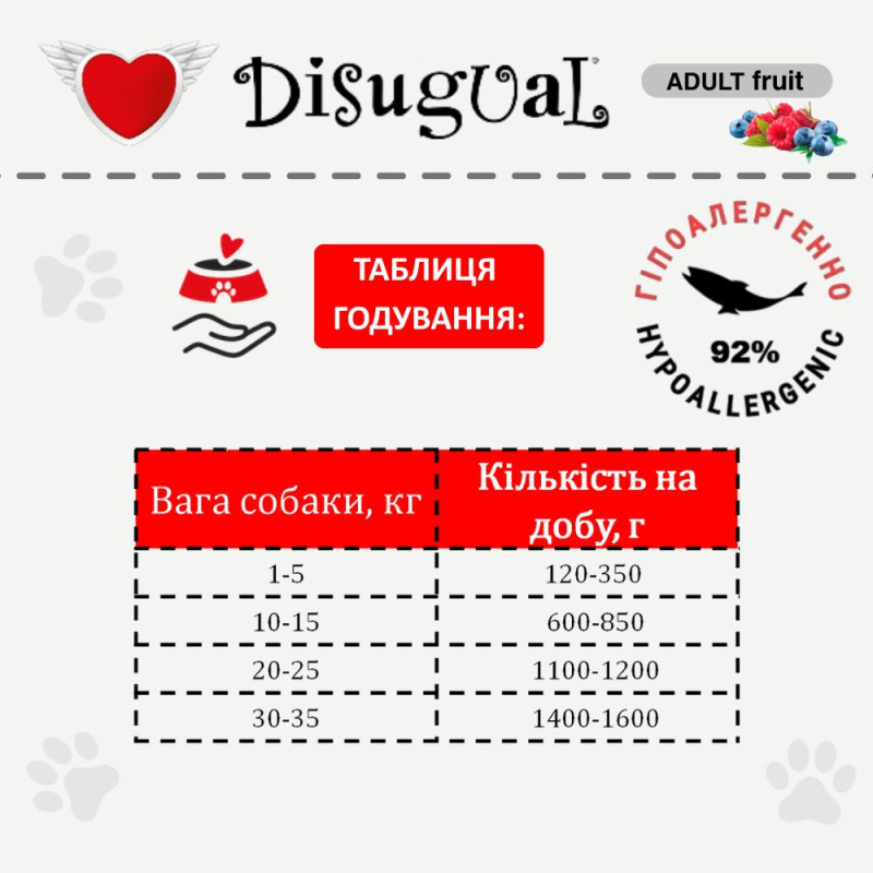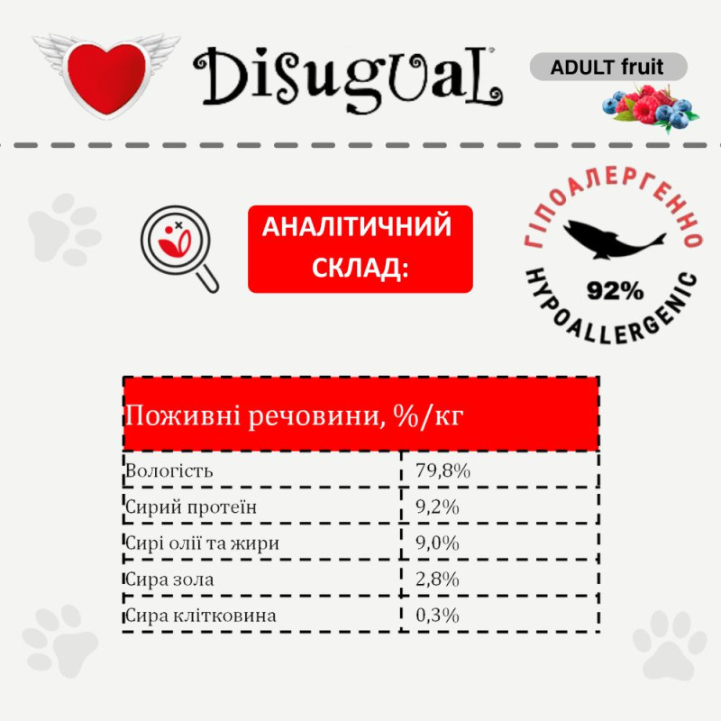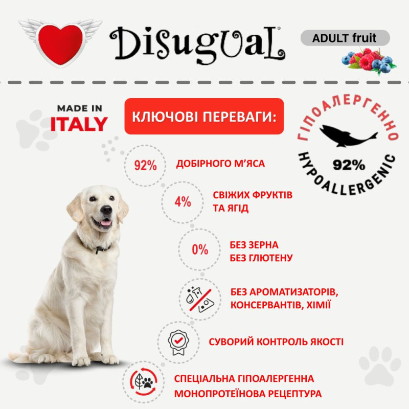 безглютенового корму для собак Disugual Adult Dog Fruit 92% - це натуральна їжа