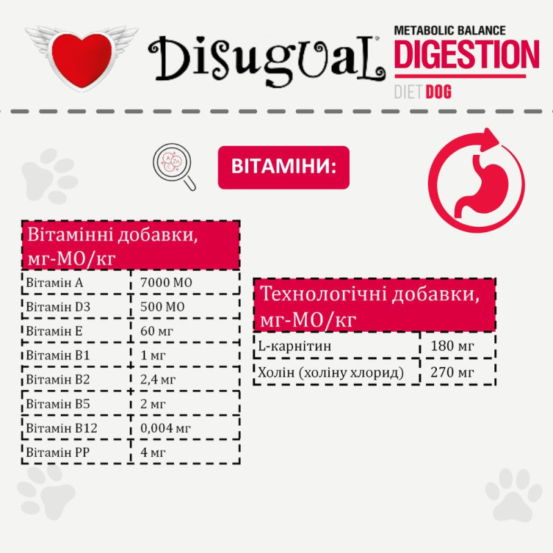 рецептура монопротеїнового дієтичного корму для собак Disugual Metabolic Balance Diet Dog Digestion Low Fat без глютену на