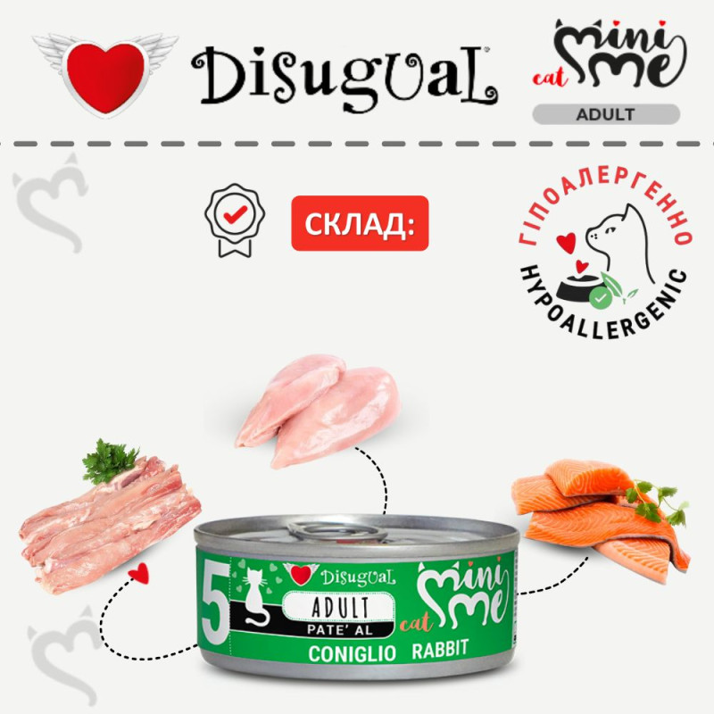 Disugual Mini Me Cat 96% Protein Rabbit Безглютеновий консервований беззерновий корм для котів Паштет з Кролика