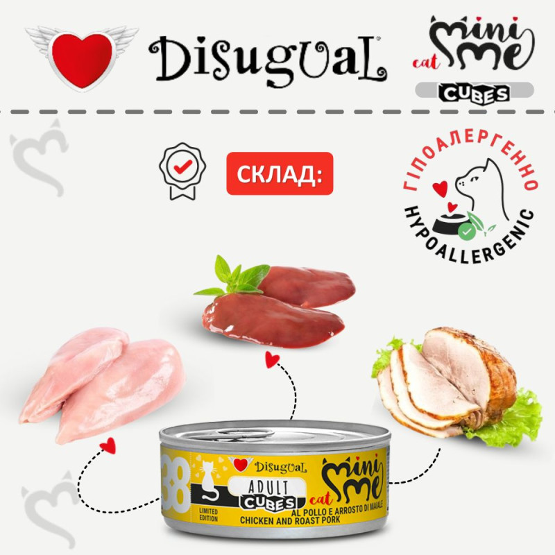 Disugual Mini Me Cubes Cat 72% Chicken & Roast Pork Безглютенова консерва для котів Курка із Запеченою Свининою