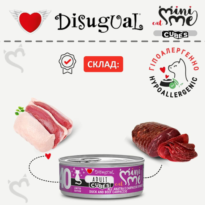 Disugual Mini Me Cubes Cat 72% Duck & Beef Carpaccio Безглютенова консерва для котів Качка з Карпаччо із Яловичини