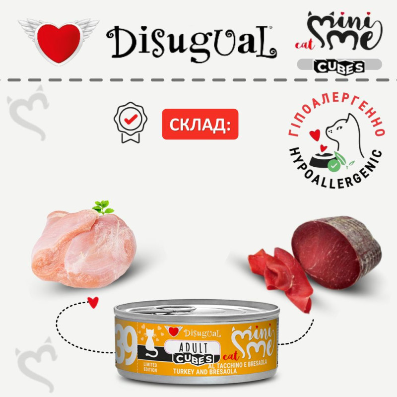 Disugual Mini Me Cubes Cat 72% Turkey & Bresaola Безглютенова консерва для котів Індичка з Сиров'яленим М'ясом