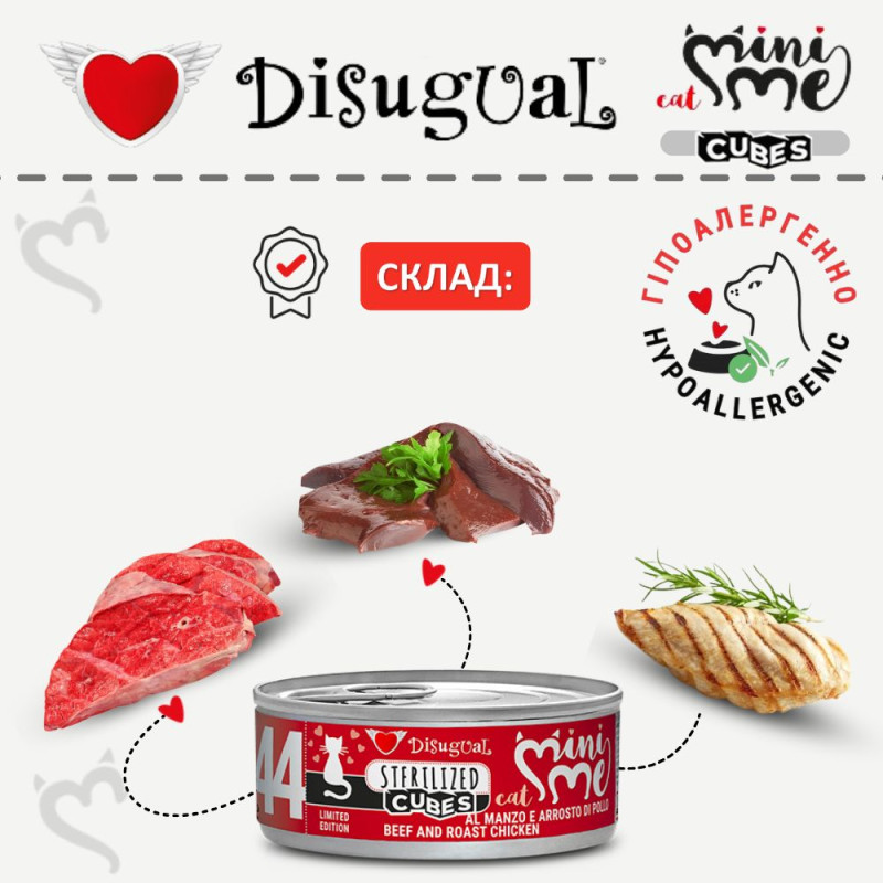 Disugual Mini Me Cubes Sterilized Cat 72% Beef & Roast Chicken Безглютенова консерва для стерилізованих кішок Яловичина із Запеченою Куркою