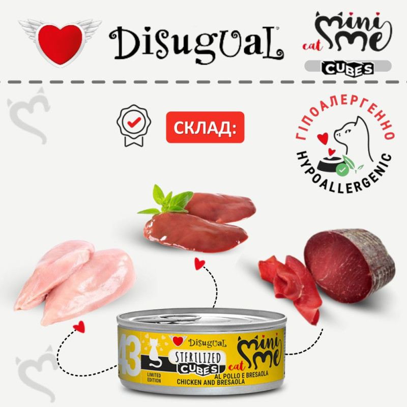 Disugual Mini Me Cubes Sterilized Cat 72% Chicken & Bresaola Безглютенова консерва для стерилізованих кішок Курка з Сиров'яленим М'ясом