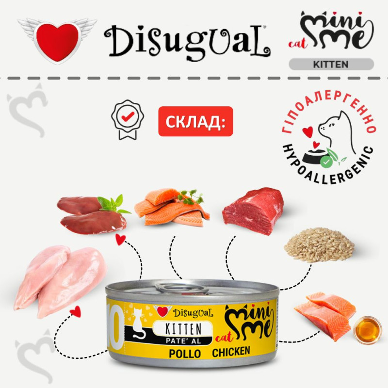 Disugual Mini Me Kitten 96% Protein Chicken Безглютеновий консервований корм для кошенят Паштет з Курки