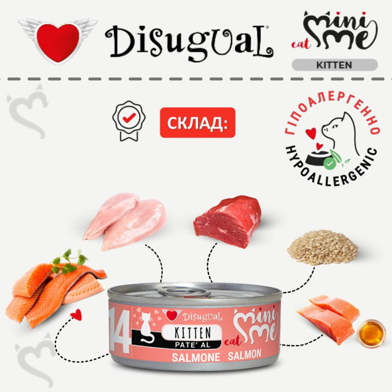 Disugual Mini Me Kitten 96% Protein Salmon Безглютеновий консервований корм для кошенят Паштет з Лосося