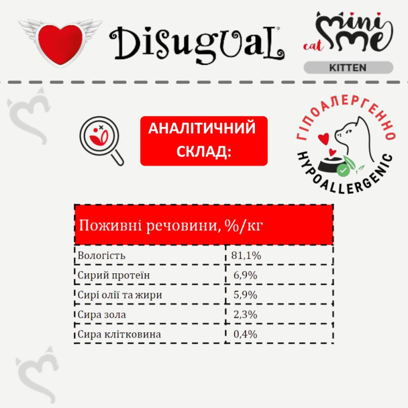 Склад беззернового гіпоалергенного паштета для кошенят Disugual Mini Me Kitten 96% Protein