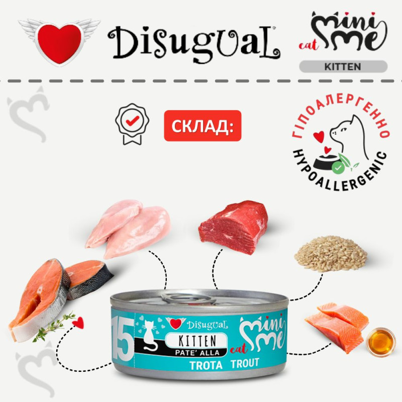 Disugual Mini Me Kitten 96% Protein Trout Безглютеновий консервований корм для кошенят Паштет з Форелі