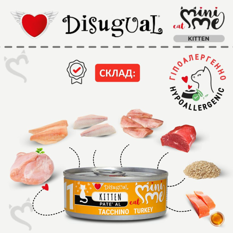 Disugual Mini Me Kitten 96% Protein Turkey Безглютеновий консервований корм для кошенят Паштет з Індички
