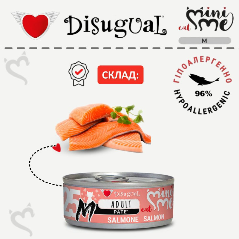 Disugual Mini Me MonoProtein Cat 96% Salmon Монопротеїновий консервований беззерновий корм для котів Паштет з Лосося