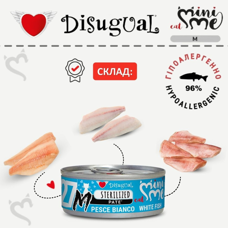 Disugual Mini Me MonoProtein Sterilized Cat 96% White Fish Монопротеїнова консерва для стерилізованих котів Паштет з Білої Риби
