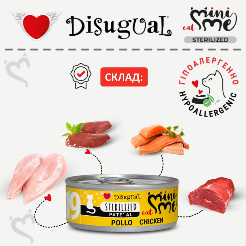 Disugual Mini Me Sterilized Cat 96% Protein Chicken Беззерновий консервований корм для стерилізованих котів Паштет з Курки