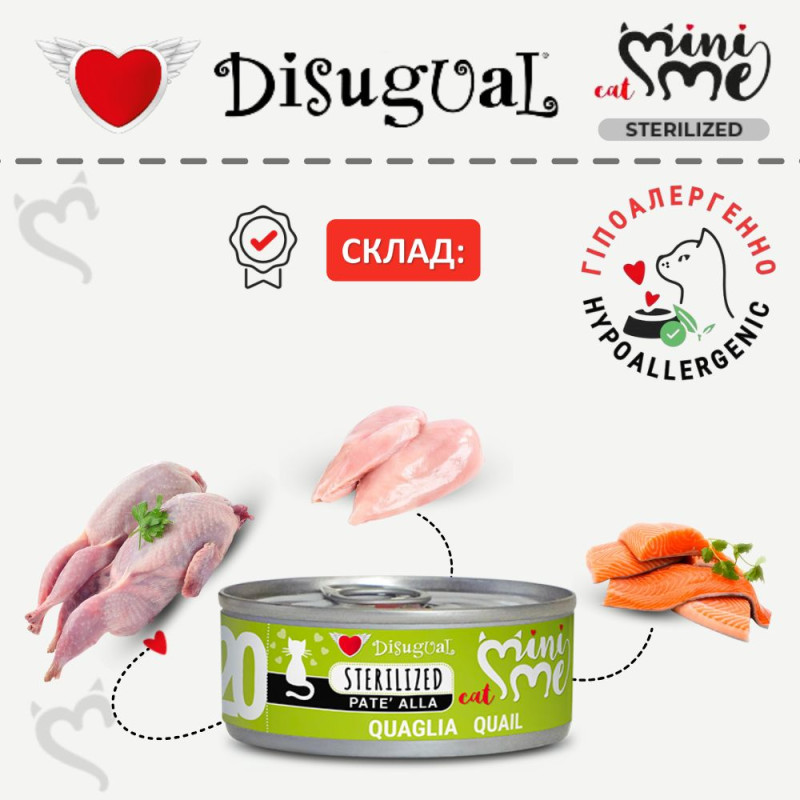 Disugual Mini Me Sterilized Cat 96% Protein Quail Беззерновий консервований корм для стерилізованих котів Паштет з Перепілки
