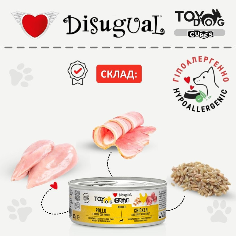 Disugual TOYDog Cubes 92% Adult Chicken, Speck & Spelt Безглютенова консерва для собак маленьких порід Курка з Беконом та Спельтою