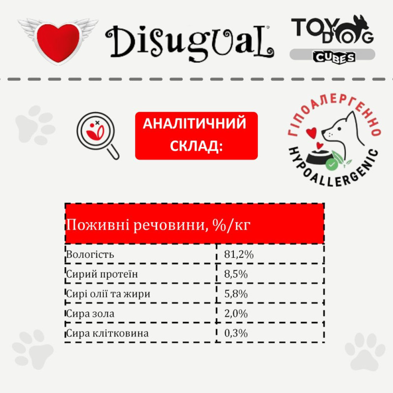 Disugual TOYDog Cubes 92% Puppy Turkey, Cooked Ham & Rice Безглютенова консерва для цуценят маленьких порід Індичка з Прошутто та Рисом