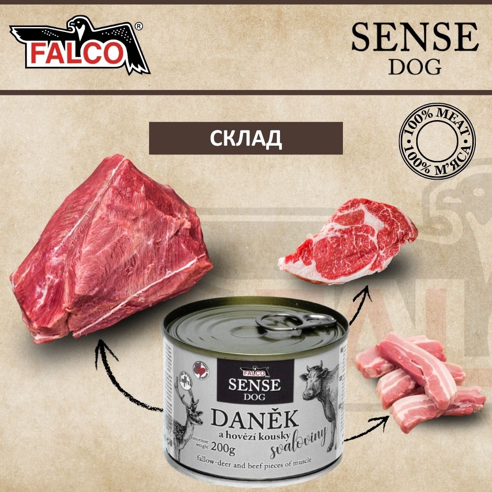 FALCO SENSE DOG 100% Meat Deer & Beef: 50% оленини, 25% яловичини, 25%