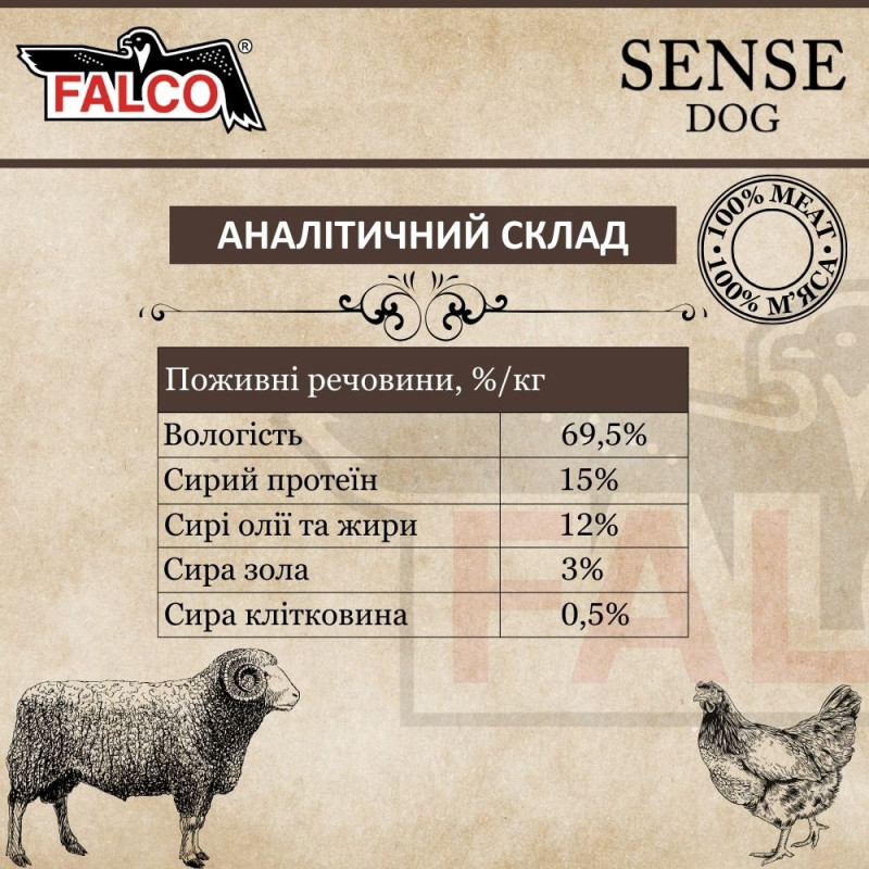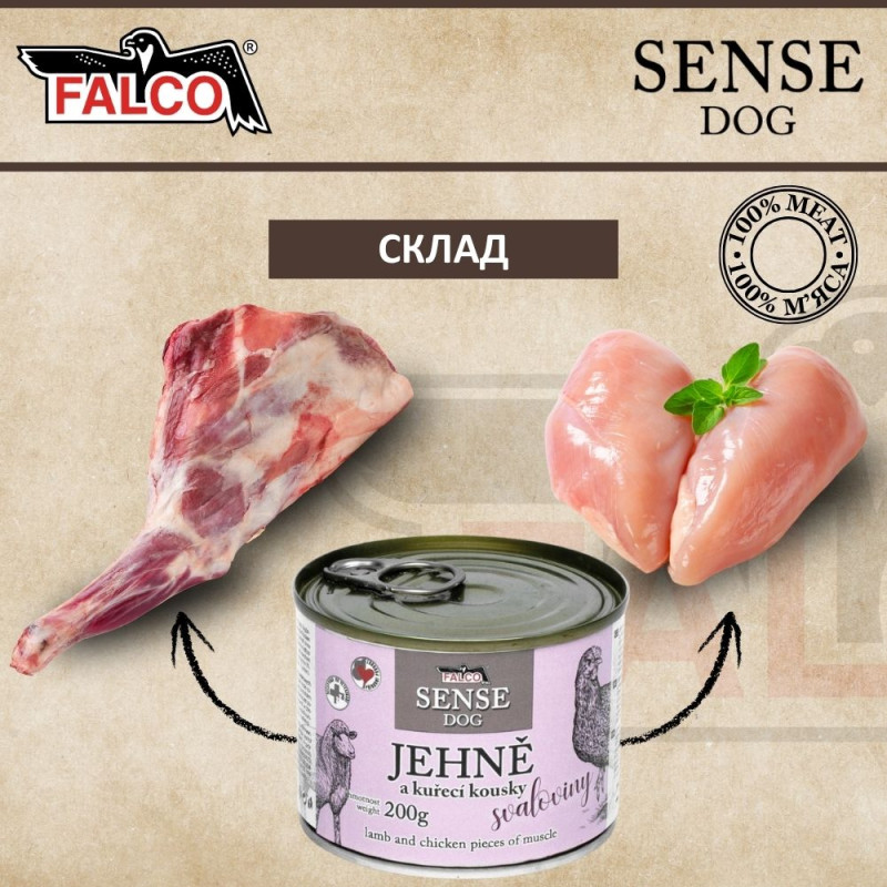 Куркою FALCO SENSE DOG 100% Meat Lamb & Chicken: