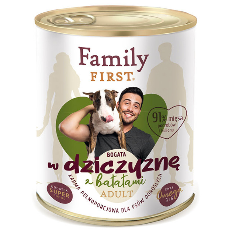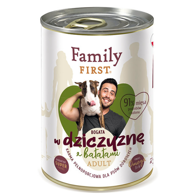 Family First Adult Game With Sweet Potatoes Безглютенова консерва для дорослих собак Дичина з бататом