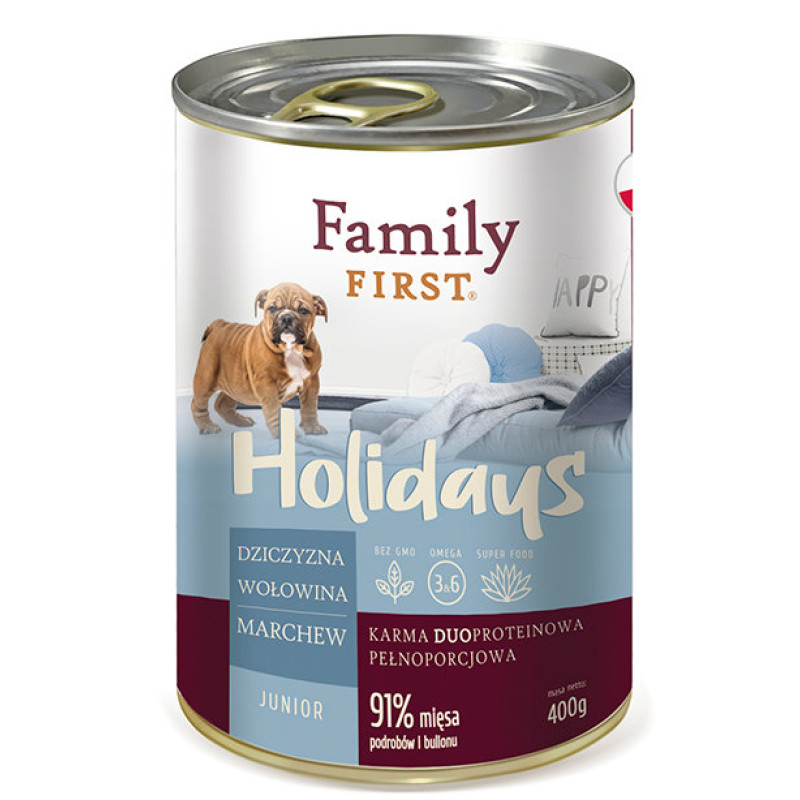 Family First Holidays Junior Game & Beef With Carrots Беззернова консерва для цуценят та юніорів Дичина та Яловичина з морквою