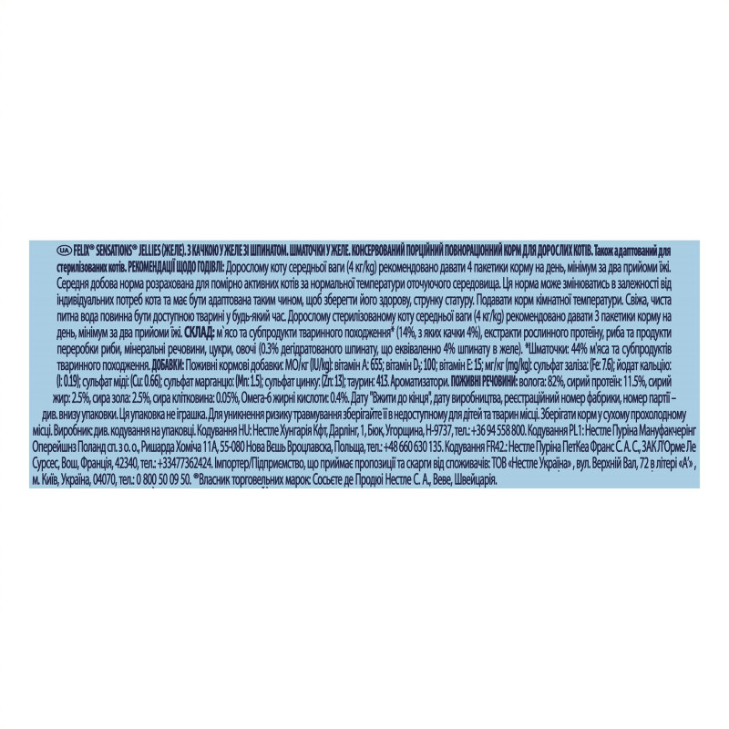 Felix Sensations Jellies Duck & Spinach Вологий корм для дорослих котів Шматочки в желе з качкою та шпинатом