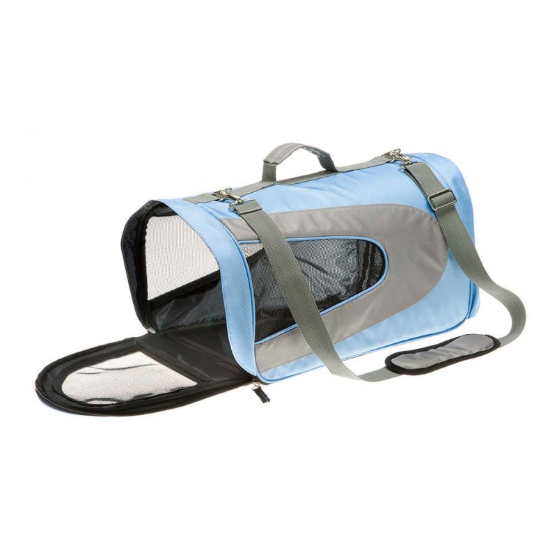Дорожня сумка-переноска з плечовим ременем для дрібних собак та котів Beauty – зручна транспортна сумка для тварин вагою до 8 кг, що виготовлена з мікрофібри, яку можна мити та легко чистити. Великі отвори та сітчасті вставки з трьох боків забезпечують вихованця свіжим повітрям навіть у спекотні дні. Сумка оснащена зручним плечовим ременем, ручками для перенесення та карабіном всередині для фіксації тварини, що унеможливлює раптове вискакування з сумки. Сумка оснащена відділенням для посуду улюбленця, що забезпечує додатковий комфорт під час тривалих подорожей.