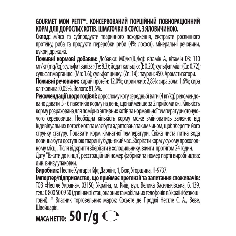 Gourmet Mon Petit Beef in Gravy Вологий корм для кішок Міні-філе з яловичиною в соусі
