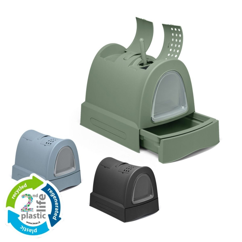 Imac Zuma 2nd Plastic Life Закритий туалет-будиночок із вторинного пластику з вугільним фільтром та лопаткою для котів