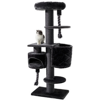 Nobby Cupid Big Кігтеточка-багаторівневий ігровий комплекс з будиночками та лазалками для котів - це багатофункціональний незамінний ігровий комплекс для котів, що задовольняє багато природних інстинктів та дозволяє кішці активно досліджувати навколишнє середовище, розвиватися фізично і психологічно, а також почуватися безпечно в межах своєї території. Кігтеточка-багаторівневий ігровий комплекс для кота має стійку прямокутну основу, що з легкістю витримує активну гру, будиночок, гамак, лежак та верхні платформи для кішки обтягнуті м’яким плюшем й створюють неповторний затишок, стовпчики-дряпалки виготовлені з сизалю та забезпечують довговічність та ефективний догляд за кігтями. Ключові переваги багаторівневого ігрового комплексу для кішки полягають в тому, що задовольняють природні потреби та інстинкти та допомагають котам підтримувати фізичну та емоційну рівновагу: Інстинкт полювання – коти мають потребу в імітації полювання. Висячі канати дозволяють котам задовольнити свій природній інстинкт мисливця та виплескати енергію, адже канати нагадують котикам здобич, яку треба вполювати, підстрибнувши та схопивши, а зловивши - тягнути, гризти або кусати, як справжній хижак. Інстинкт територіальності – коти люблять мати свою територію, яку вони можуть досліджувати та позначати. Достатня кількість різнорівневих поличок дає котам багато простору для дослідження, а затишний будиночок забезпечить відчуття захищеності та територіальності. Інстинкт стрибків та лазіння – коти природно схильні до лазіння та стрибків, оскільки це частина їхньої поведінки в дикій природі. Багаторівневий комплекс Cupid Big забезпечує можливість виконувати ці рухи. Інстинкт ховання та укриття – коти люблять мати місця, де можна сховатися, причаїтися або спати в безпеці. Багаторівневий ігровий комплекс Cupid Big оснащений декількома локаціями для затишку пухнастого улюбленця: - Глибокий гамак. Гамак для кота створює ідеальне місце для відпочинку. Коти від природи люблять високі, м’які та злегка хиткі місця, де вони можуть почуватися захищеними та водночас спостерігати за простором. Гамак дає відчуття легкості та комфорту, оскільки злегка пружинить і повторює форму тіла, створюючи ефект обіймів. Це чудово розслабляє та знижує рівень стресу, особливо у молодих або активних котів, які потребують періодів спокою після гри. - Лежак-будинок у формі печери - створює відчуття ізоляції від зовнішнього світу, що є особливо важливим для полохливих або молодих котів, яким вкрай важливе відчуття безпеки, усамітнення та особистого простіру. Спеціальна закрита форма печери дозволяє чудово утримувати тепло, що особливо приємно в холодну пору року. Інстинкт грайливості, пізнання та соціалізації – особливо у молодших котів і кошенят, багаторівневі комплекси стають чудовим великим середовищем для ігор, спостеріганням за оточуючими та тренуванням соціальних навичок. Інстинкт заточування кігтів – ігровий комплекс оснащений вбудованими кігтеточками-стовпчиками із сизалю, що дозволяє котам точити свої кігті без шкоди для меблів та шпалер. Технічні характеристики: • Розмір 60 х 40 х 165 см • Діаметр сизалевих стовпчиків Ø 15 см • Випускається у декількох кольорах..