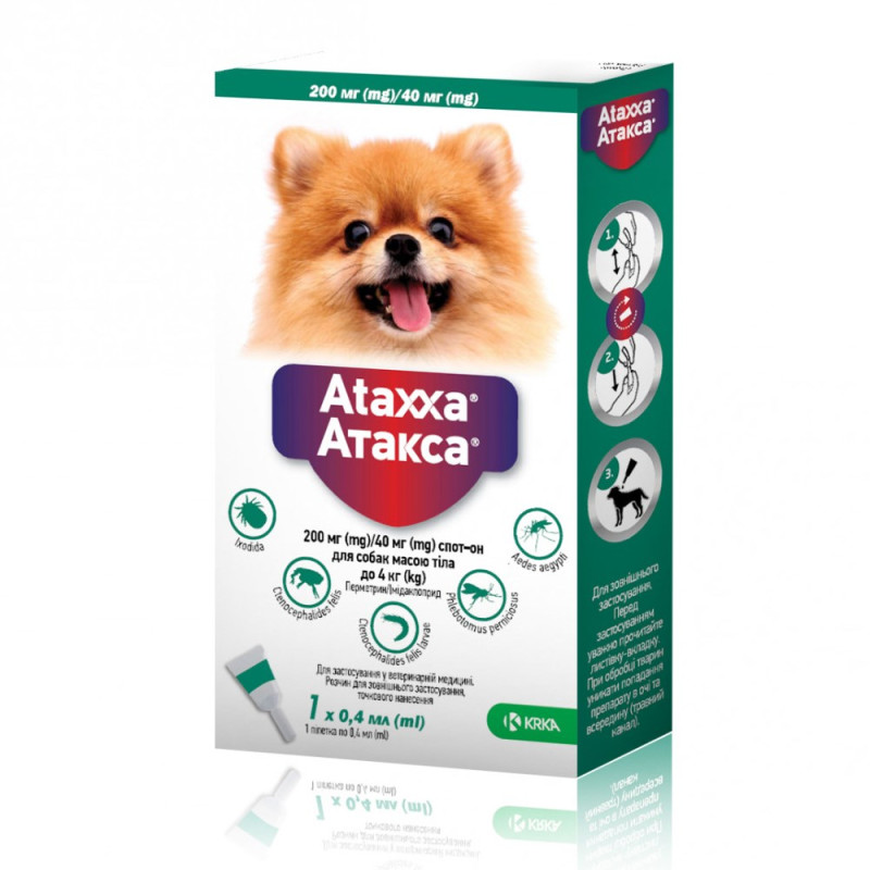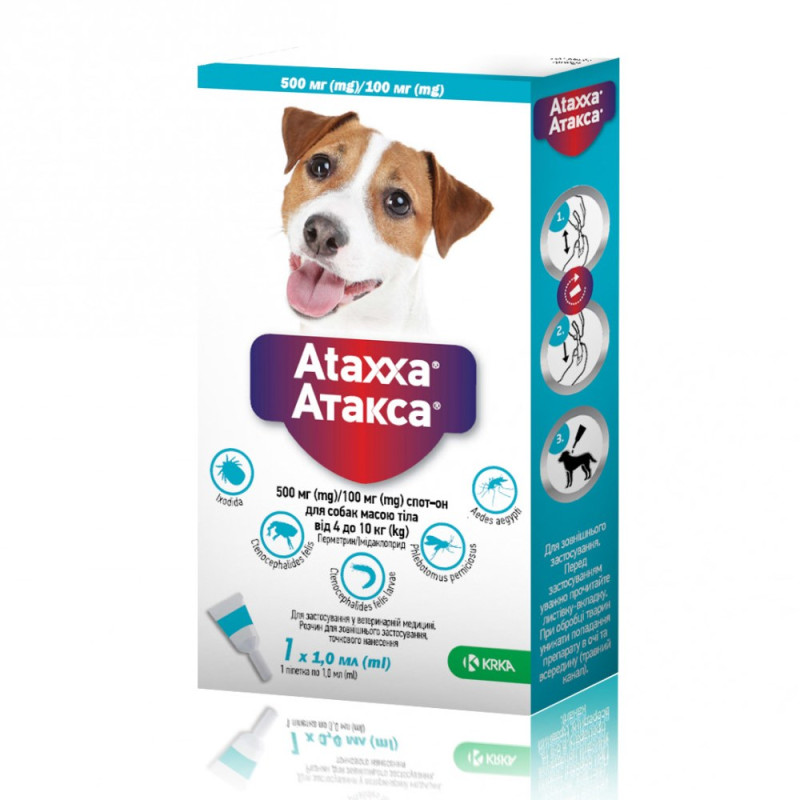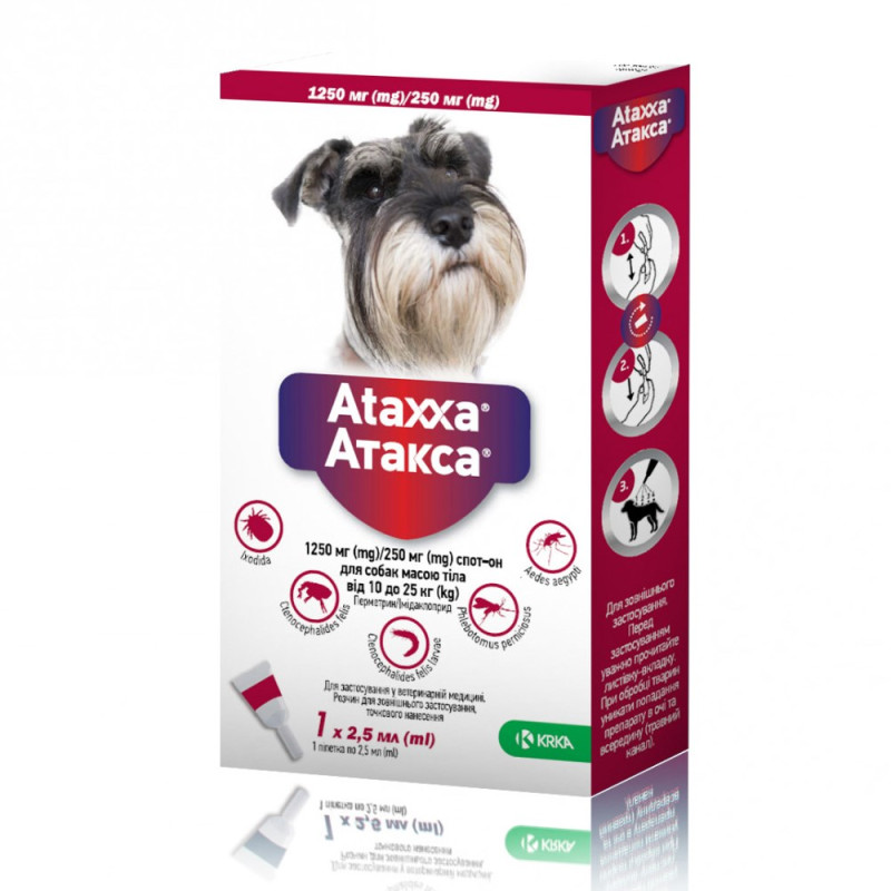 KRKA Ataxxa Spot-on Dogs Антипаразитарні краплі для собак від зовнішніх паразитів для собак Атакса Спот-он