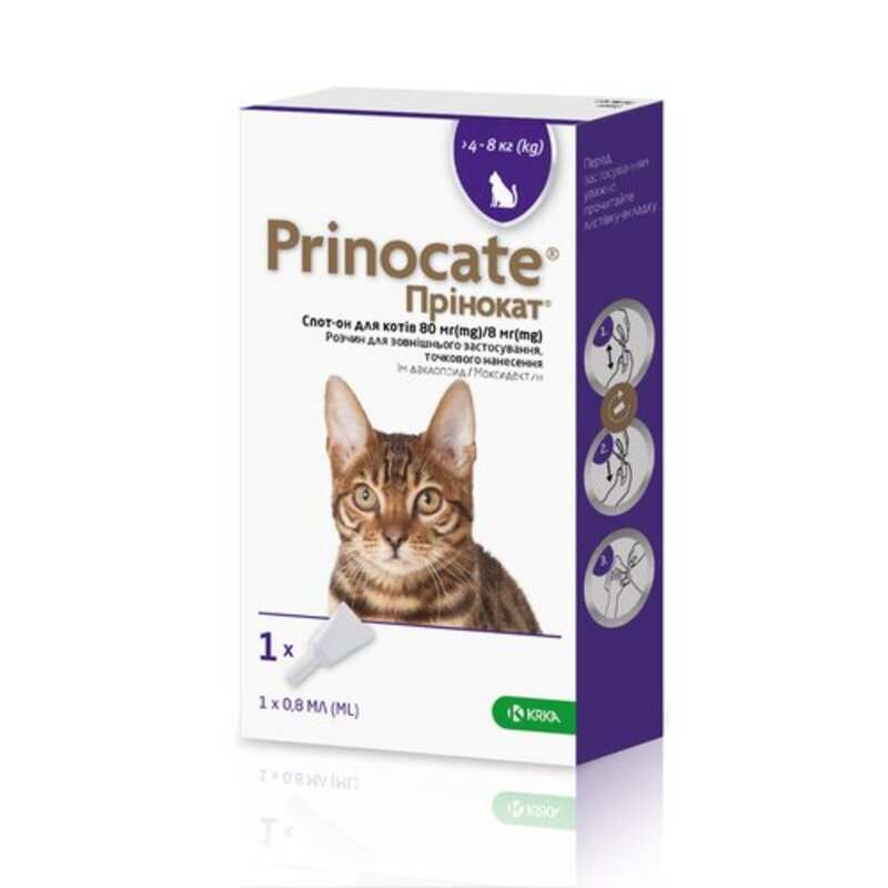 KRKA Prinocate Spot-on Cats Краплі для котів від бліх, вошей, волосоїдів, гельмінтів та шкірних кліщів Прінокат Спот-он