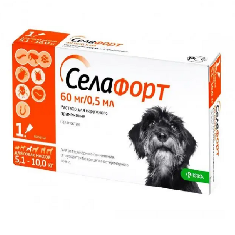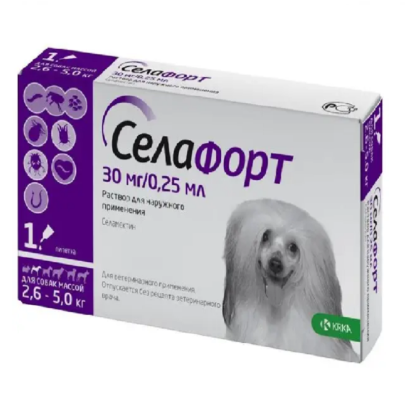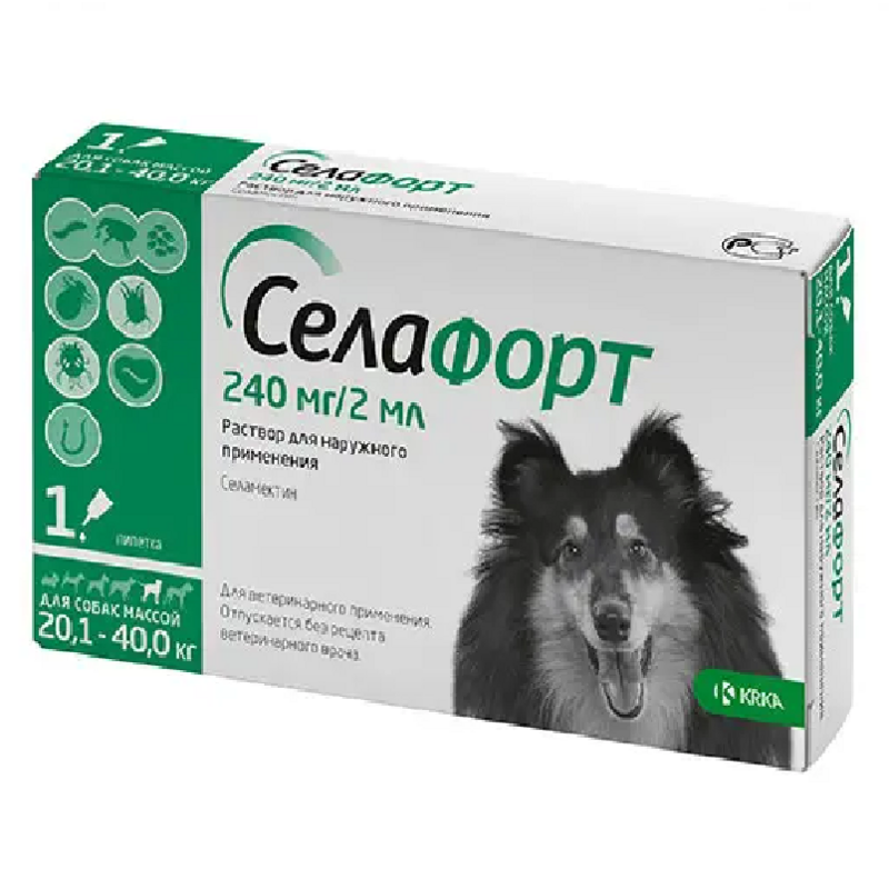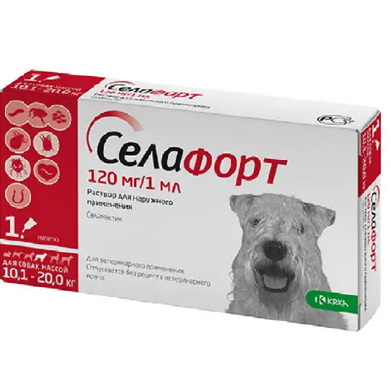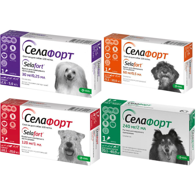 KRKA Selafort Dogs Краплі для собак від бліх, волосоїдів, гельмінтів та шкірних кліщів Селафорт