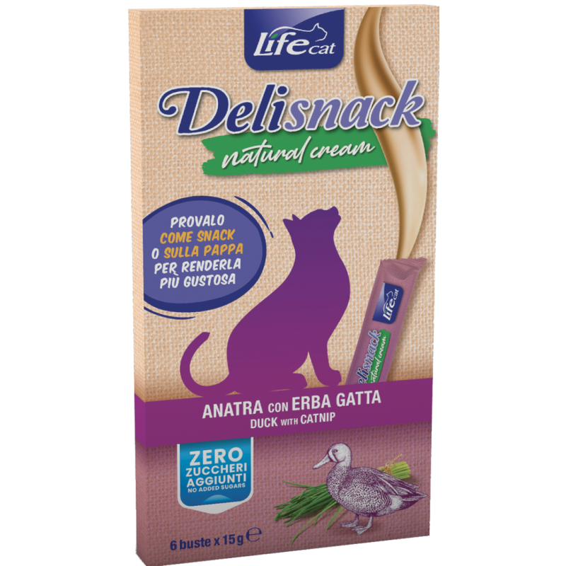 Life Cat Delisnack Natural Cream Ласощі для кішок Крем з Качкою та котячою м'ятою