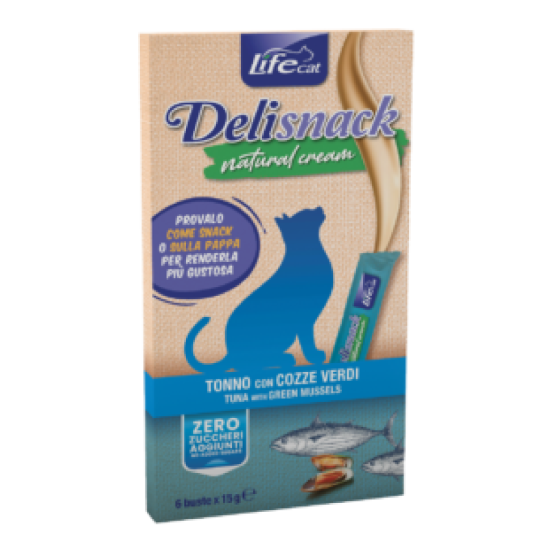 Life Cat Delisnack Natural Cream Ласощі для кішок Крем з Тунцем та Мідіями