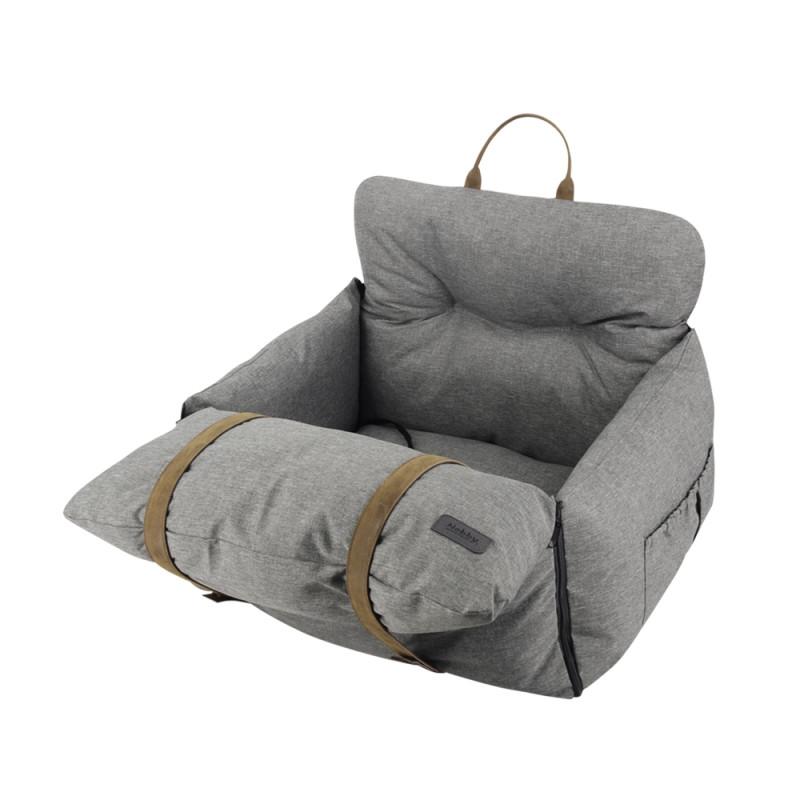 Дорожня лежанка з ременями безпеки для собак Bena - це затишний відпочинок для дому та подорожей. Модель "Bena" виготовлена з мікрофібри сірого кольору, що відштовхує воду та бруд та легко кріпиться до автокрісла за допомогою ремінця-фіксатора. Наповнювач з бавовни додатково забезпечує приємний комфорт під час лежання, а протиковзкі накладки запобігають ковзанню лежака. Лежанку можна прати при температурі до 30°C у пральній машині.