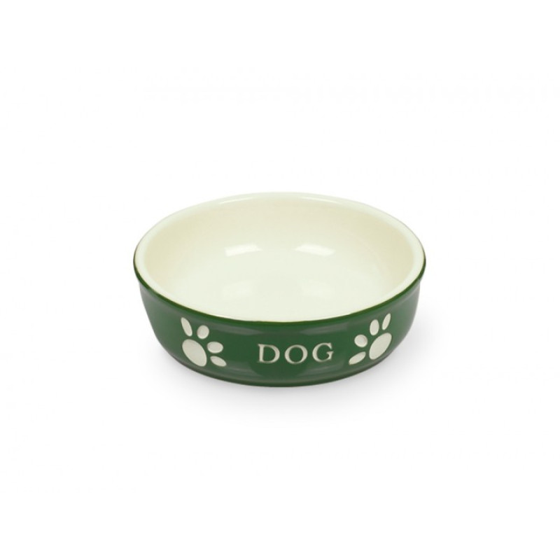 Керамічна миска для собак Лапки Dog - вишукана миска для вашого улюбленця, що виготовлена з якісної кераміки. Якравий дизайн з собачими лапками та тематичним написом доповнить будь-який інтер'єр. Миска не поглинає запахів їжі, не змінює смак страв та абсолютно нетоксична. Керамічна миска достатньо важка, що запобігає ковзанню миски по підлозі. Класична керамічна миска потребує ручного догляду.
