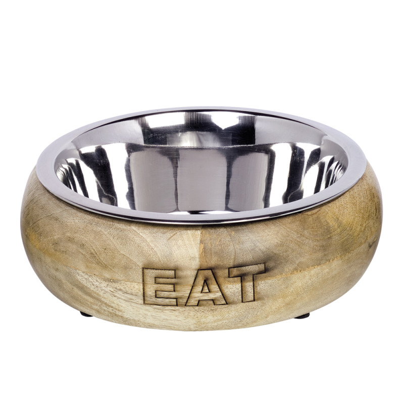 Антиковзка металева миска на підставці з дерева манго для собак Eat - надійна та безпечна миска для вашого улюбленця. Миска виготовлена з тонкого металу, стійкого до ударів, який неможливо розбити чи зламати, що забезпечує довговічність використання та безпечність для вашого чотирилапого друга. Миска не поглинає запахів їжі, не змінює смак страв та абсолютно нетоксична. Підставка зі світлого дерева манго з антиковзкими накладками забезпечить стійкість миски на підлозі. Металева чаша легко знімається та миється. Сучасний дизайн прикрасить будь-який інтер’єр. Модель «Eat» можна використовувати у посудомийній машині.