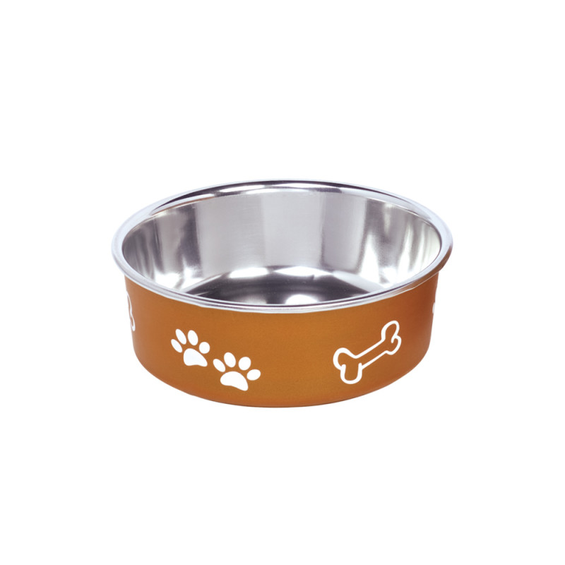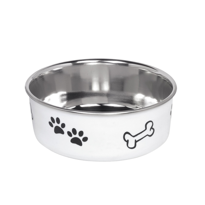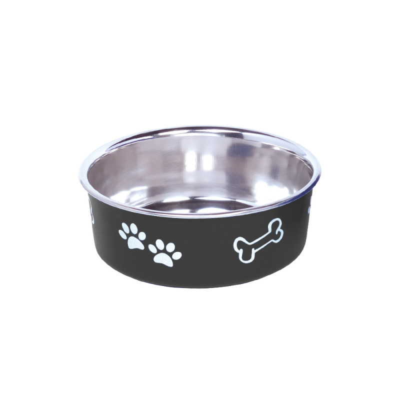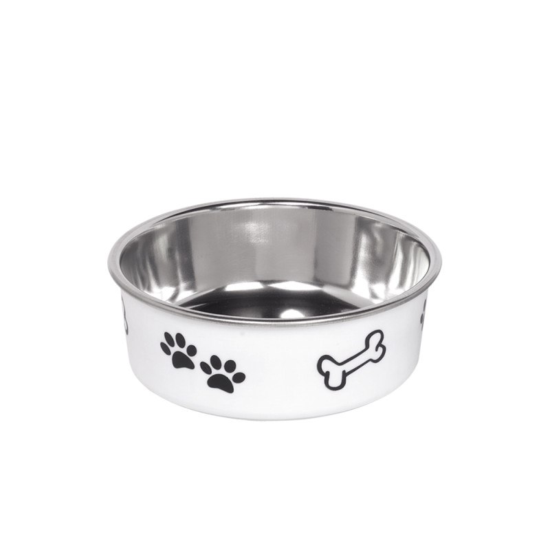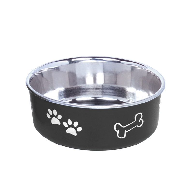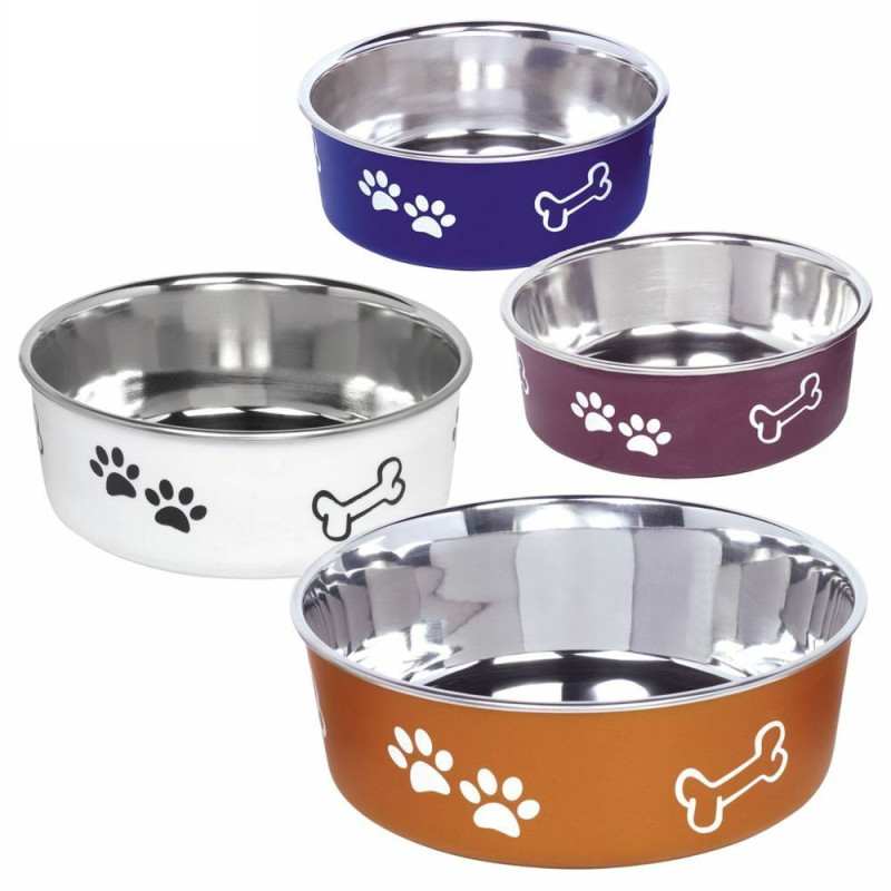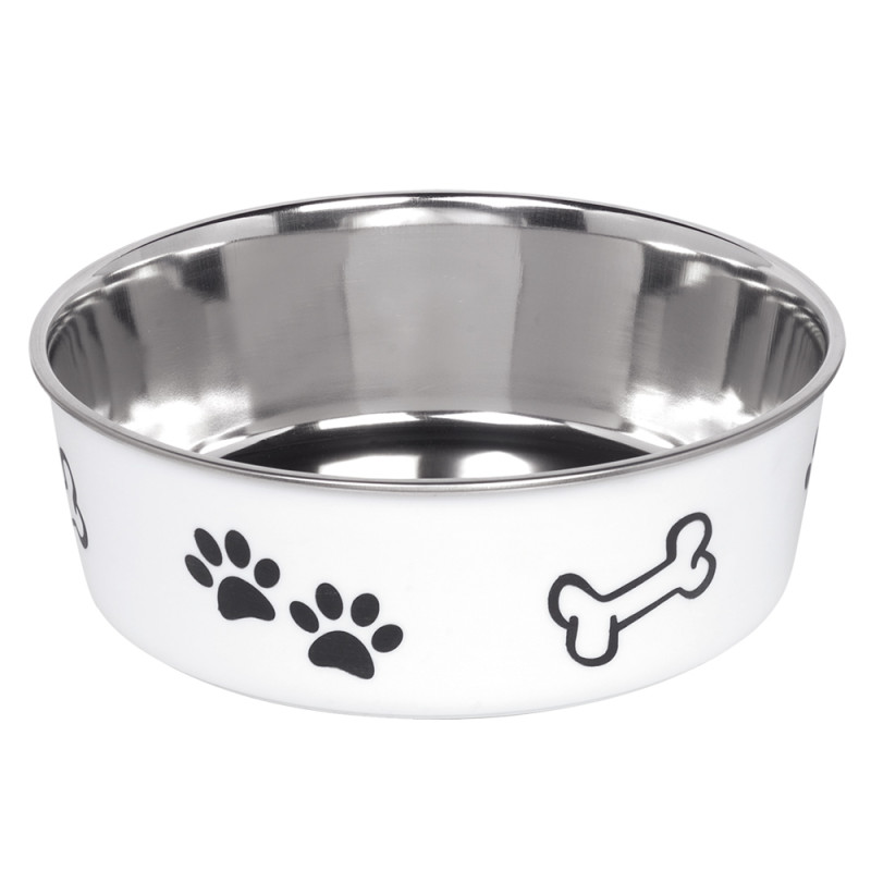 Антиковзка миска з нержавіючої сталі для собак Кістка Fusion - надійна та безпечна миска для вашого улюбленця. Миска виготовлена з тонкого металу, стійкого до ударів, який неможливо розбити чи зламати, що забезпечує довговічність використання та безпечність для вашого чотирилапого друга. Миска не поглинає запахів їжі, не змінює смак страв та абсолютно нетоксична. Антиковзке дно забезпечить стійкість миски на підлозі. Сучасний дизайн та малюнки кісток з лапками прикрасять будь-який інтер’єр. Модель «Fusion» можна використовувати у посудомийній машині.