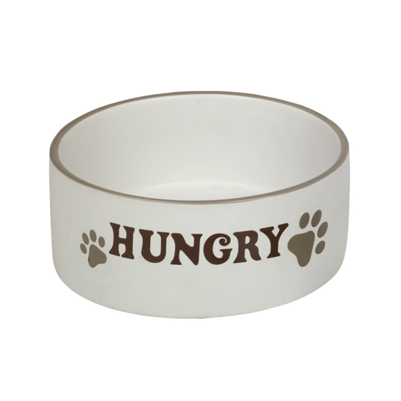 Керамічна миска для собак Напис Hungry - вишукана миска для вашого улюбленця, що виготовлена з якісної кераміки. Cтильний дизайн та тематичний напис доповнять будь-який інтер'єр. Миска не поглинає запахів їжі, не змінює смак страв та абсолютно нетоксична. Керамічна миска достатньо важка, що запобігає ковзанню миски по підлозі. Класична керамічна миска потребує ручного догляду.