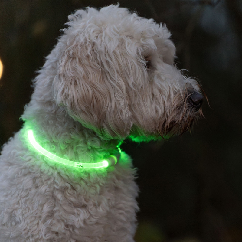 Нашийник що світиться LED Visible Plastic Collar Nobby випускається в трьох кольорах і трьох розмірах відповідно до обхвату шиї і розміру породи собаки.