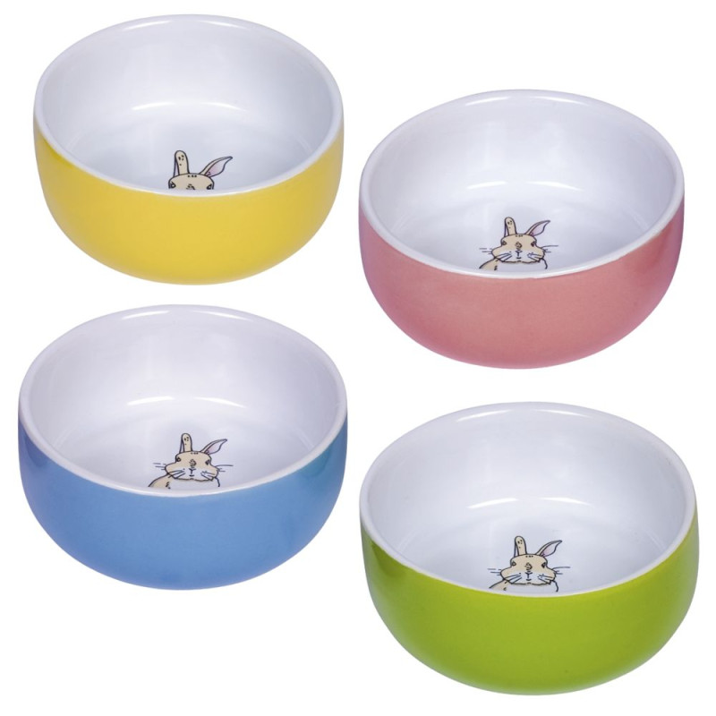 Керамічна миска для кроликів Заєць Rabbit - вишукана миска для вашого улюбленця, що виготовлена з якісної кераміки. Якравий тематичний дизайн з малюнком кролика доповнить яскравими нотками клітину вашого улюбленця. Миска не поглинає запахів їжі, не змінює смак страв та абсолютно нетоксична. Керамічна миска достатньо важка, що запобігає ковзанню миски по клітині. Класична керамічна миска потребує ручного догляду.