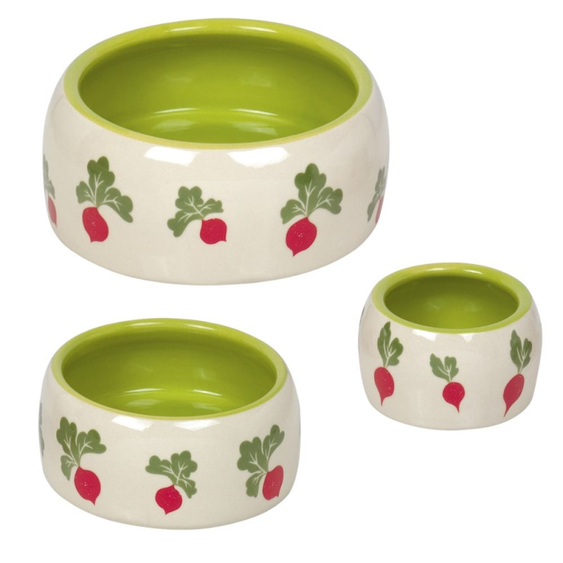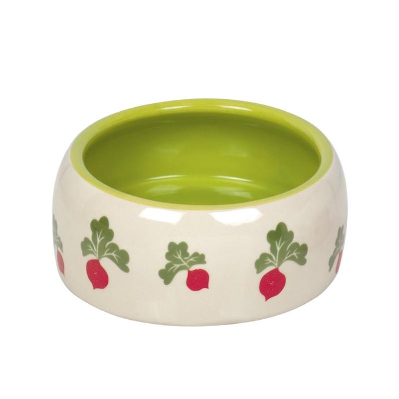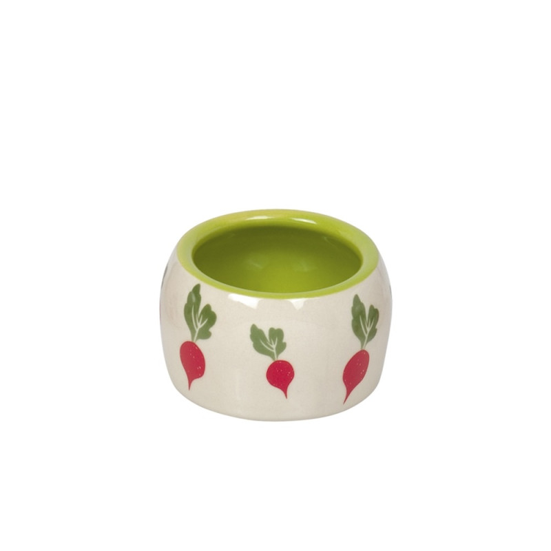 Керамічна миска із закругленими бортиками для гризунів Редис Radish - вишукана миска для вашого улюбленця, що виготовлена з якісної кераміки. Якравий тематичний дизайн з редискою доповнить яскравими нотками клітину вашого улюбленця. Миска не поглинає запахів їжі, не змінює смак страв та абсолютно нетоксична. Керамічна миска достатньо важка, що запобігає ковзанню миски по клітині. Класична керамічна миска потребує ручного догляду.