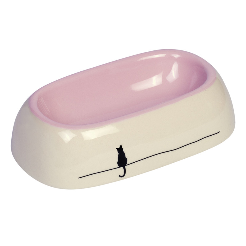 Керамічна миска Комфорт вусів для котів Tabby - вишукана миска для вашого улюбленця, що виготовлена з якісної кераміки ідеально підходить для годування котика, адже технологія виготовлення миски овальної форми допомагає представнику пласкомордої породи зручно пити та їсти. Зручний розмір запобігає дискомфорту вусів та носа під час вгамування спраги чи голоду. Якравий тематичний дизайн з котиком доповнить будь-який сучасний інтер'єр. Миска не поглинає запахів їжі, не змінює смак страв та абсолютно нетоксична. Керамічна миска достатньо важка, що запобігає ковзанню миски по підлозі. Класична керамічна миска потребує ручного догляду.